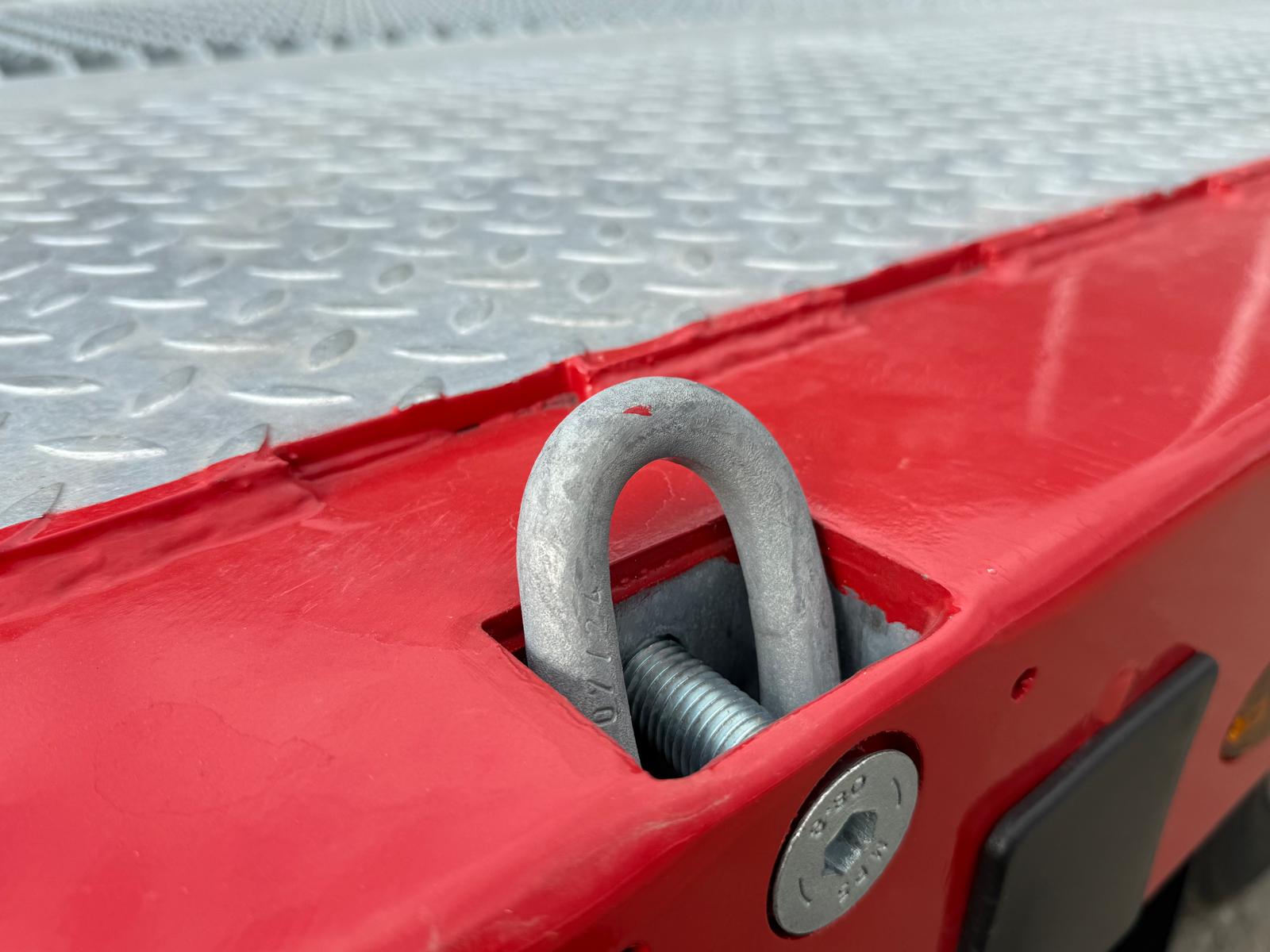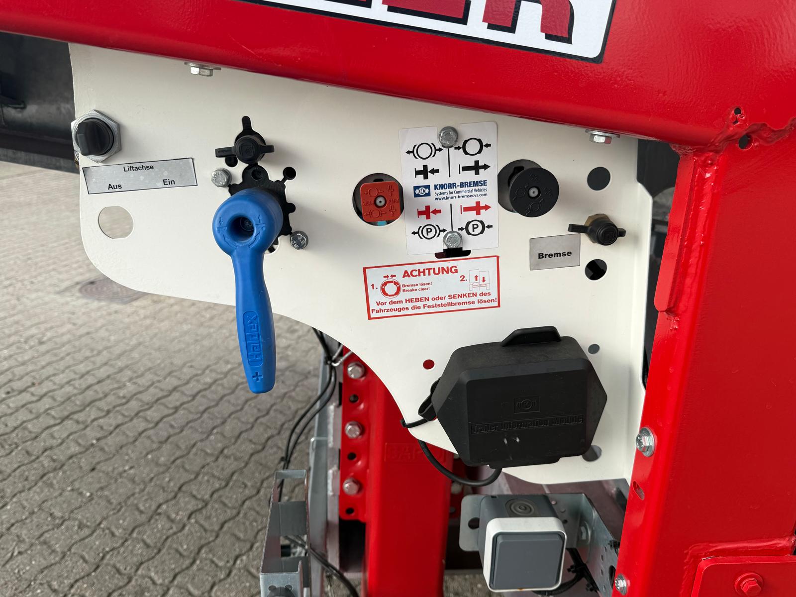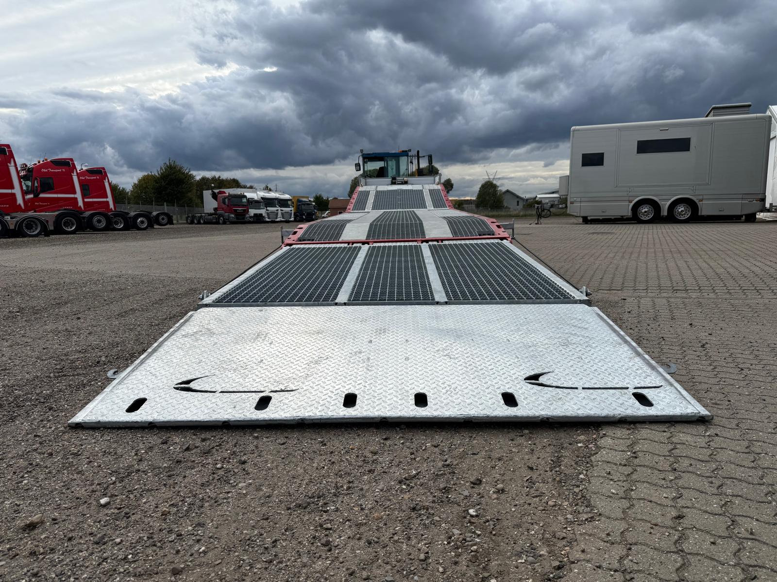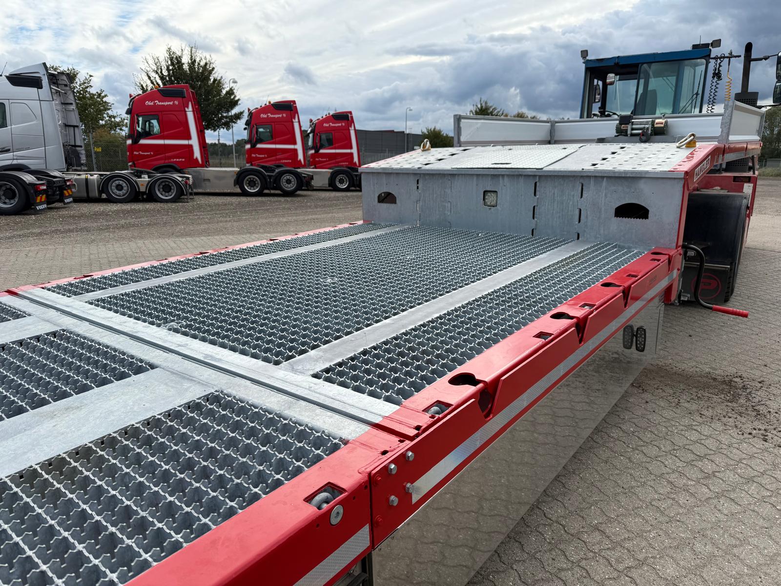 Traileren er desuden udstyret med forbredningsskilte for og bag, mange surringsmuligheder, sideskørter, værktøjsskabe samt en hydraulikstation. På rapoen findes et praktisk opbevaringsrum.