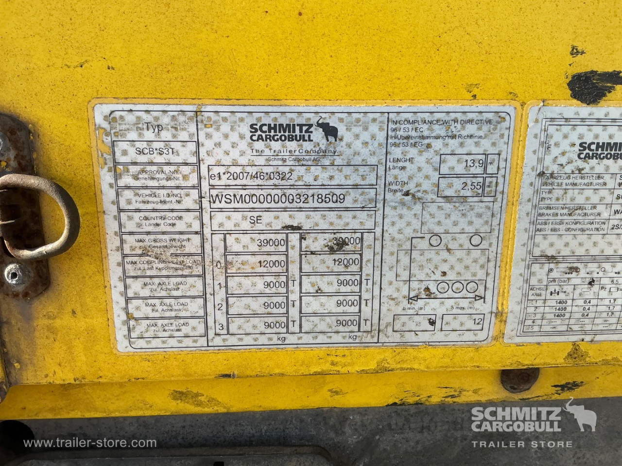 1. Achse: 445/40 R22.5, Profildybde: 9 mm / 8 mm, 2. Achse: 445/40 R22.5, Profildybde: 8 mm / 10 mm, 3. Achse: 445/40 R22.5, Profildybde: 9 mm / 8 mm