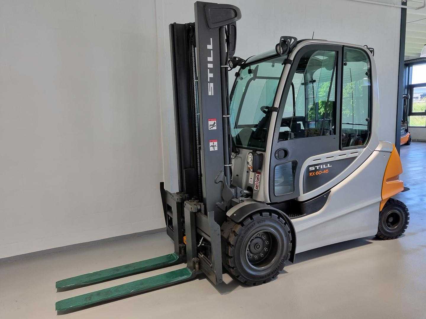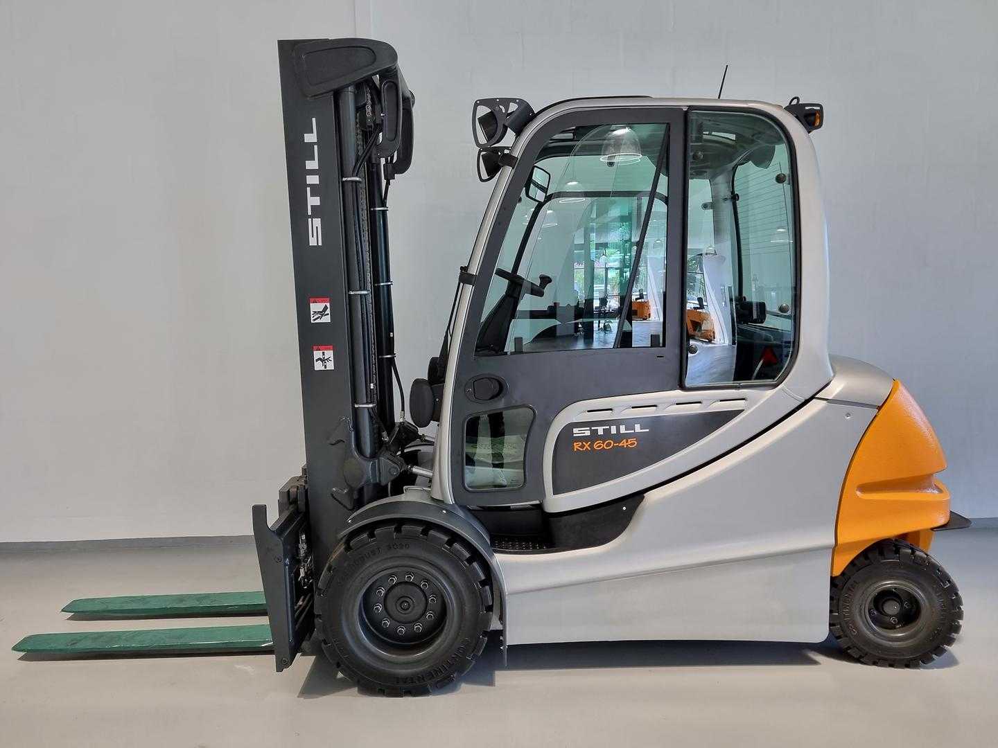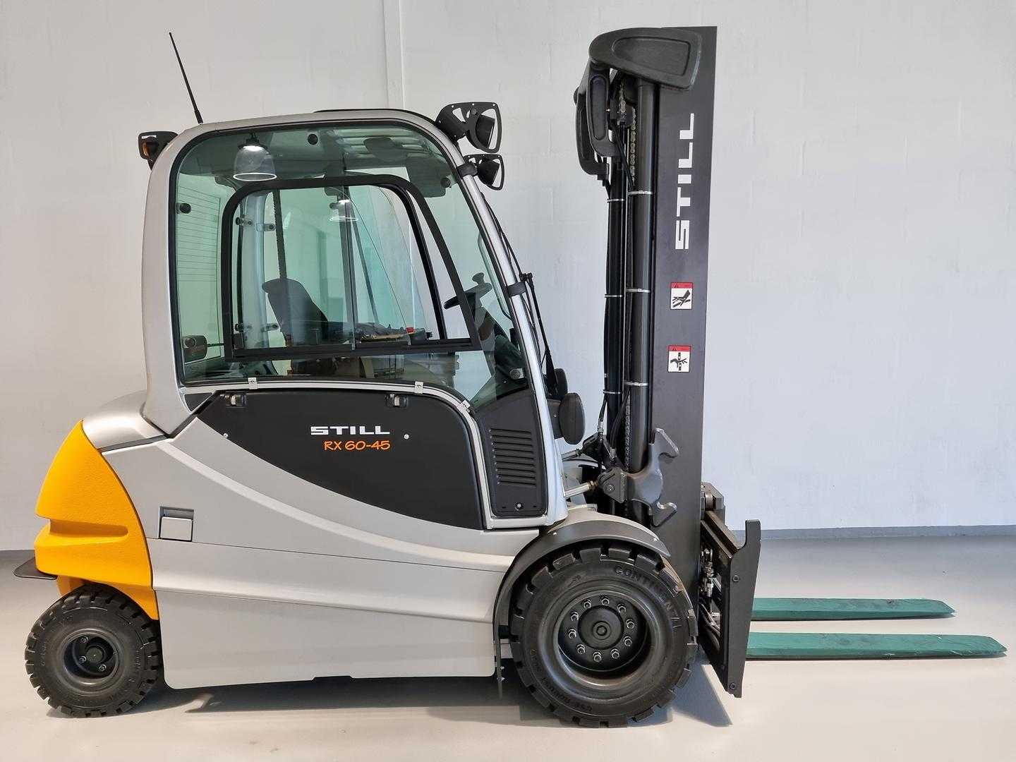Integreret gaffelflyt / sideskift,Lysanlæg og projektør H+V,Kabine med varme,Fingertip betjening,