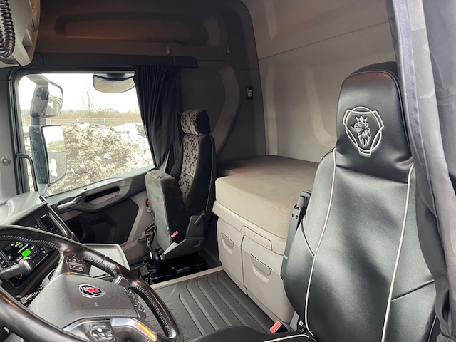 Scania R-kabinen er kendt for sin ergonomi og holdbarhed. Denne bil er udstyret med: