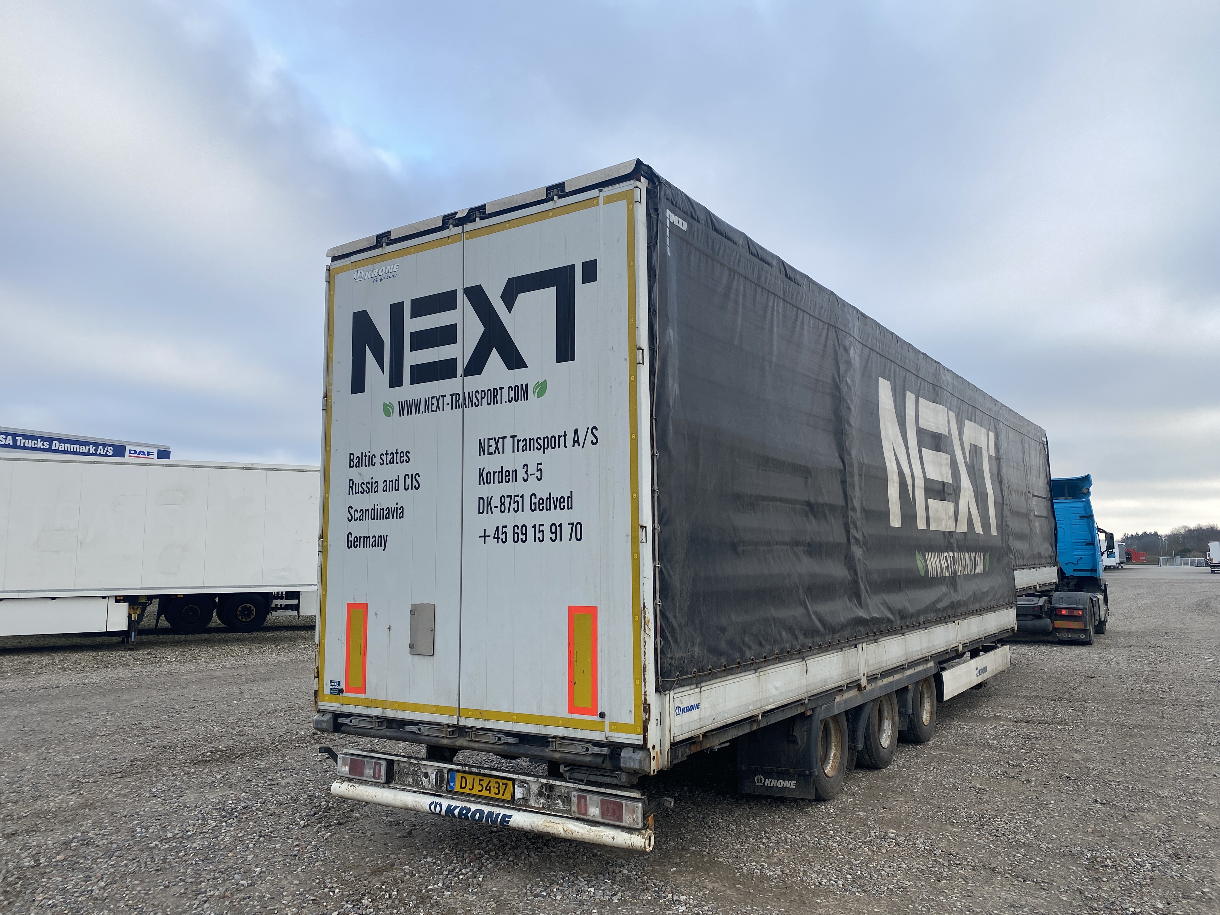 3-akslet nedbygget med presenning, hele bagdøre, skydetag. Dæk str. 235/75 R 17,5. Rapo 96 cm højde
