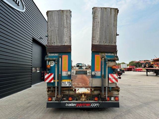 4 Achs. GOLDHOFER Tieflader, hydr. zwangslenkung, 6.000 mm ausziehbar, dobbelt rampen, verbreiterung bis 3,0 m, hydr. Stützbeine hinten, hydr. seilwinde auf dem hals