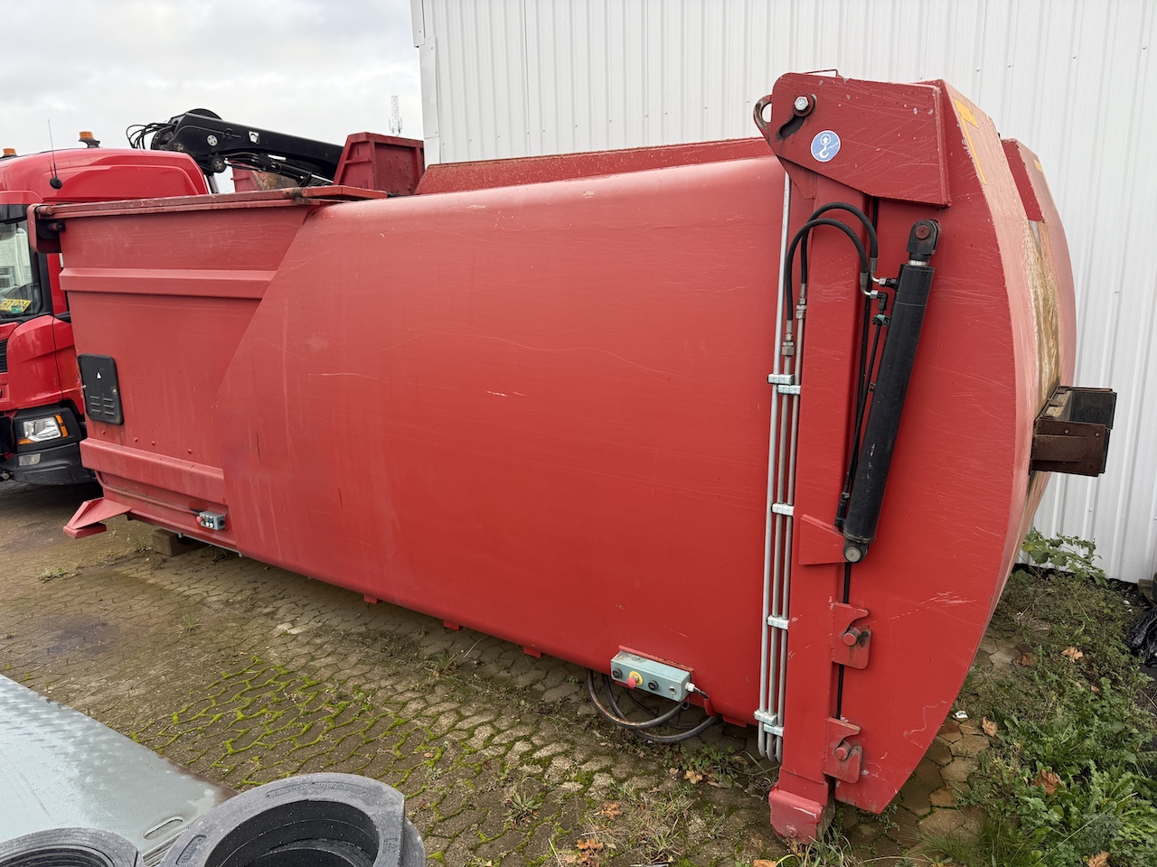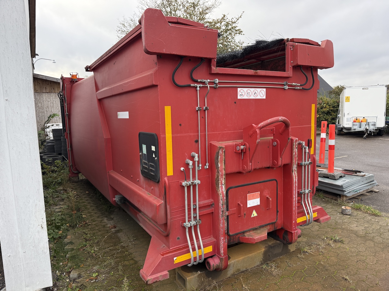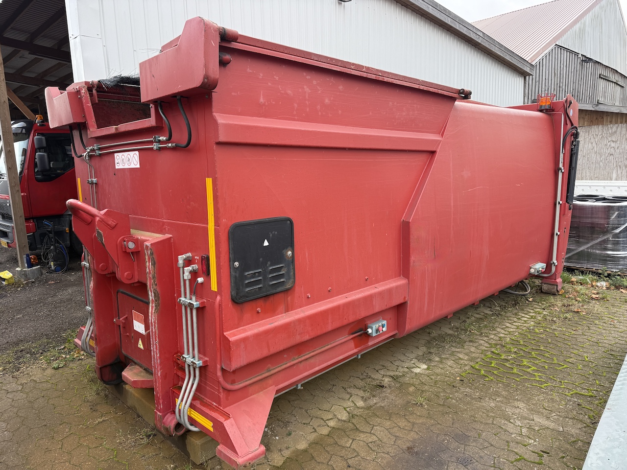 Kiggen PD731, komprimator container til kroghejs, tunnel til kran arm, stopmål 5400 mm. højde til bag-ruller 2600 mm. Højde over rammen 2450 mm. egenvægt 4.650 kg. max vægt 13.400 kg. Har været brugt til pap, plast og glas. Alt virker som det skal.