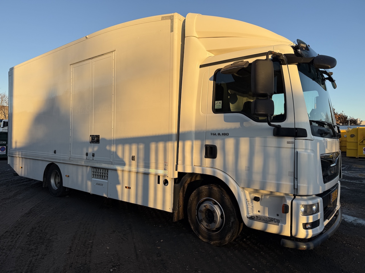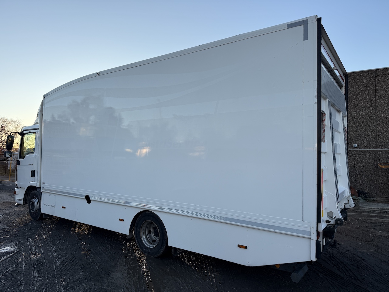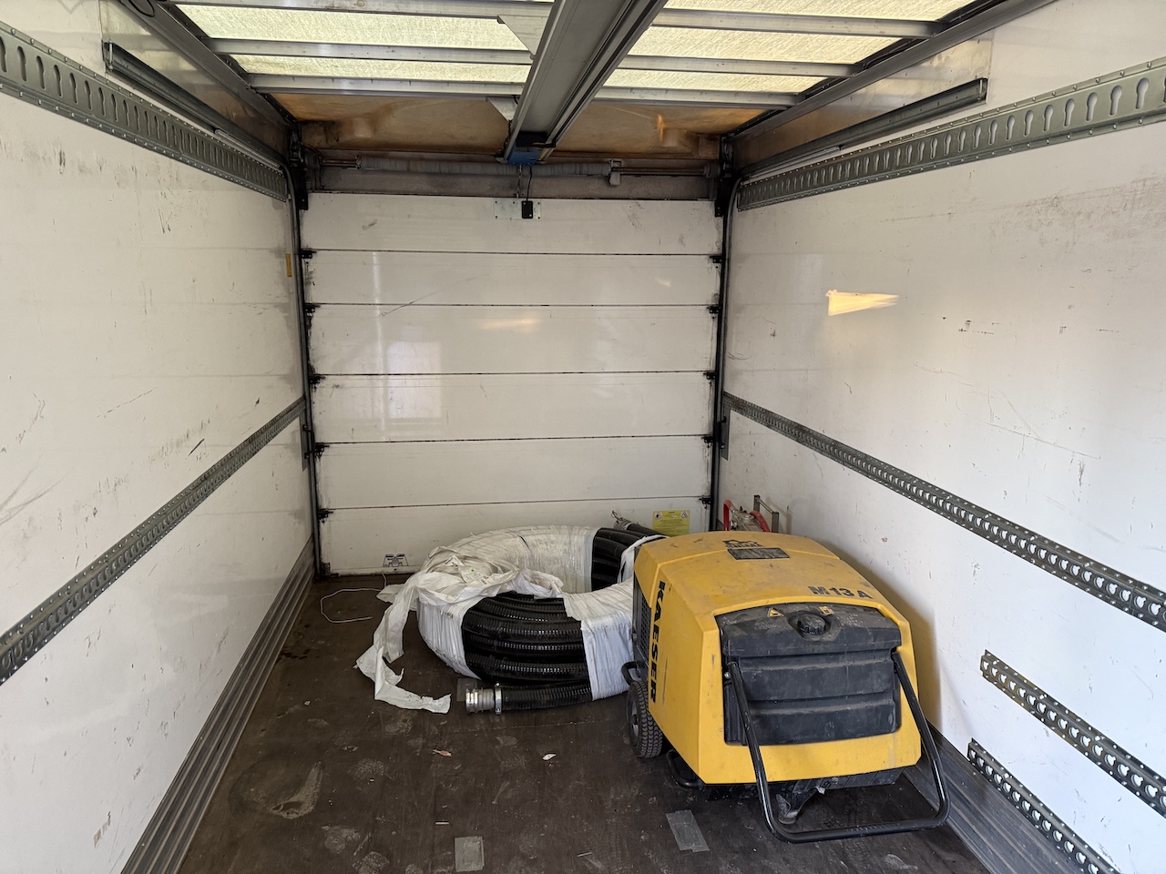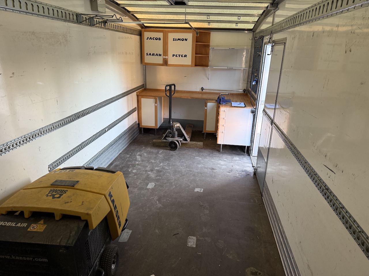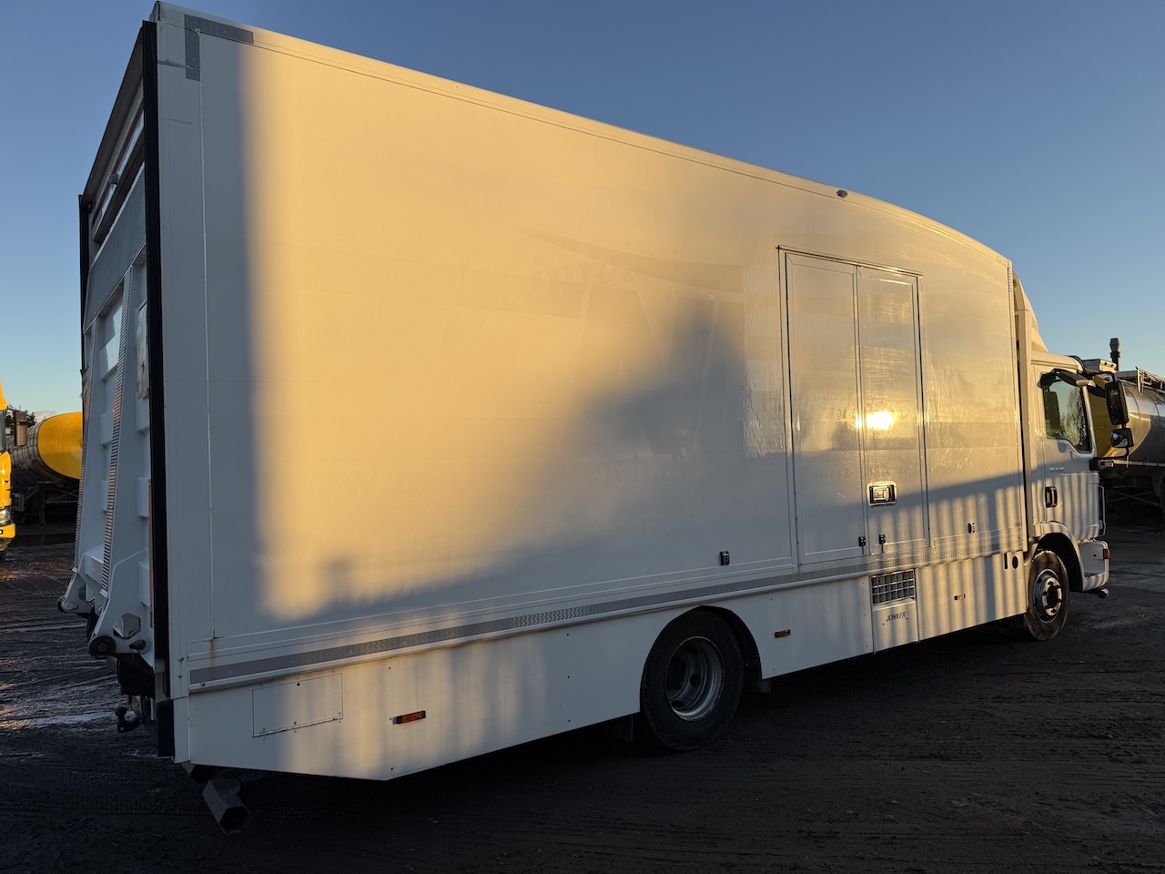 El-rulleport i bagenden, 2 stk. binderækker, indrettet med skabe og værkstedsbord, sideskørter, fritaget for vejafgift. fremstår pæn og velholdt.